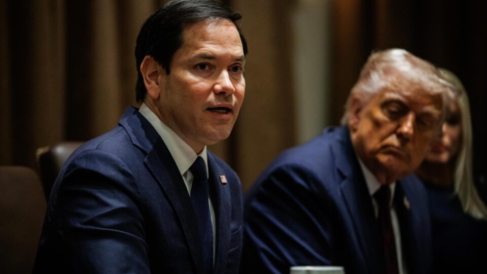 O secretário de Estado Marco Rubio ao lado do presidente Donald Trump durante reunião com o Gabinete na Casa Branca (Foto: EFE/EPA/Samuel Corum/ POOL)