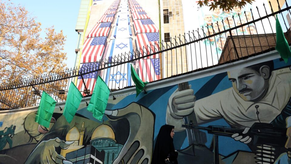Propaganda contra Israel e os Estados Unidos em prédio em Teerã, capital iraniana (Foto: ABEDIN TAHERKENAREH/EFE/EPA)