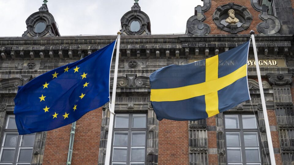 Bandeiras da Suécia e da União Europeia (Foto: EFE/EPA/JOHAN NILSSON)