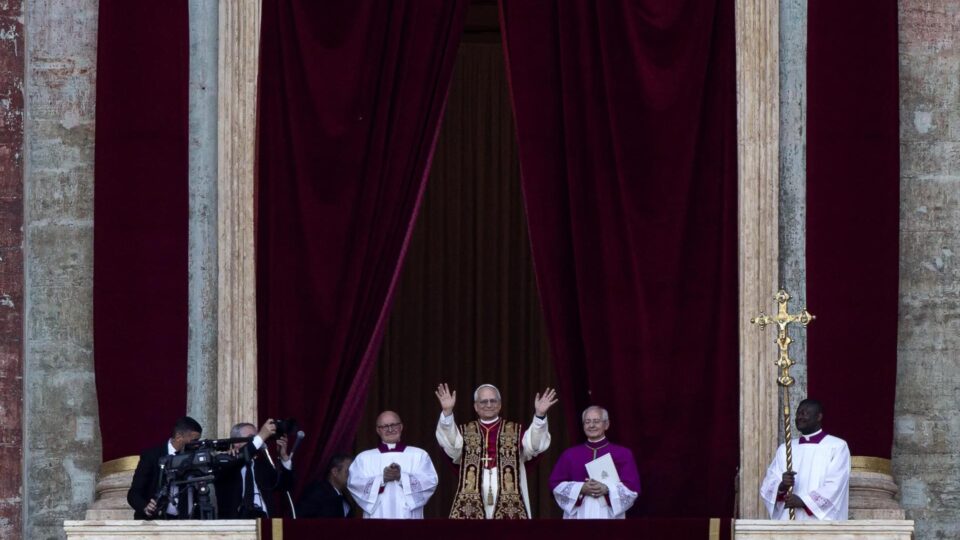 Papa Leão XIV sendo apresentado ao mundo nesta quinta (8) (Foto: EFE/EPA/ANGELO CARCONI)